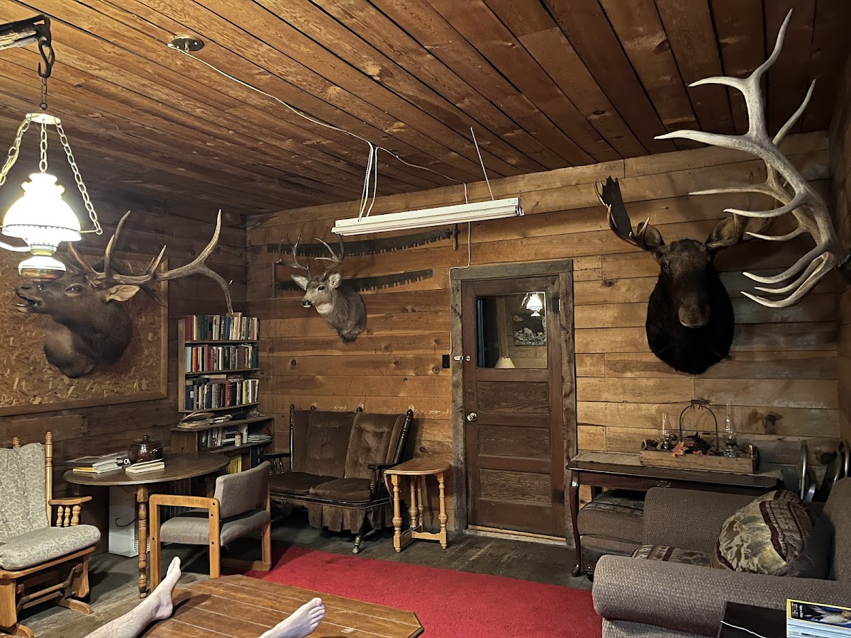 Quiet little lodge with alot of history. Darlene and her husband Robert run the place. Sometimes with the help of family. Very good people. All the rooms have multiple beds. Nice claw foot tub that a person could soak their bones in after fishing, or riding all day. 2 showers and 2 sinks available. I was able to keep things in a fridge there. Darlene is very loving and is over the top with hospitality. Very lovely. Will be back in the future, even if it is just to stop in and say hello.